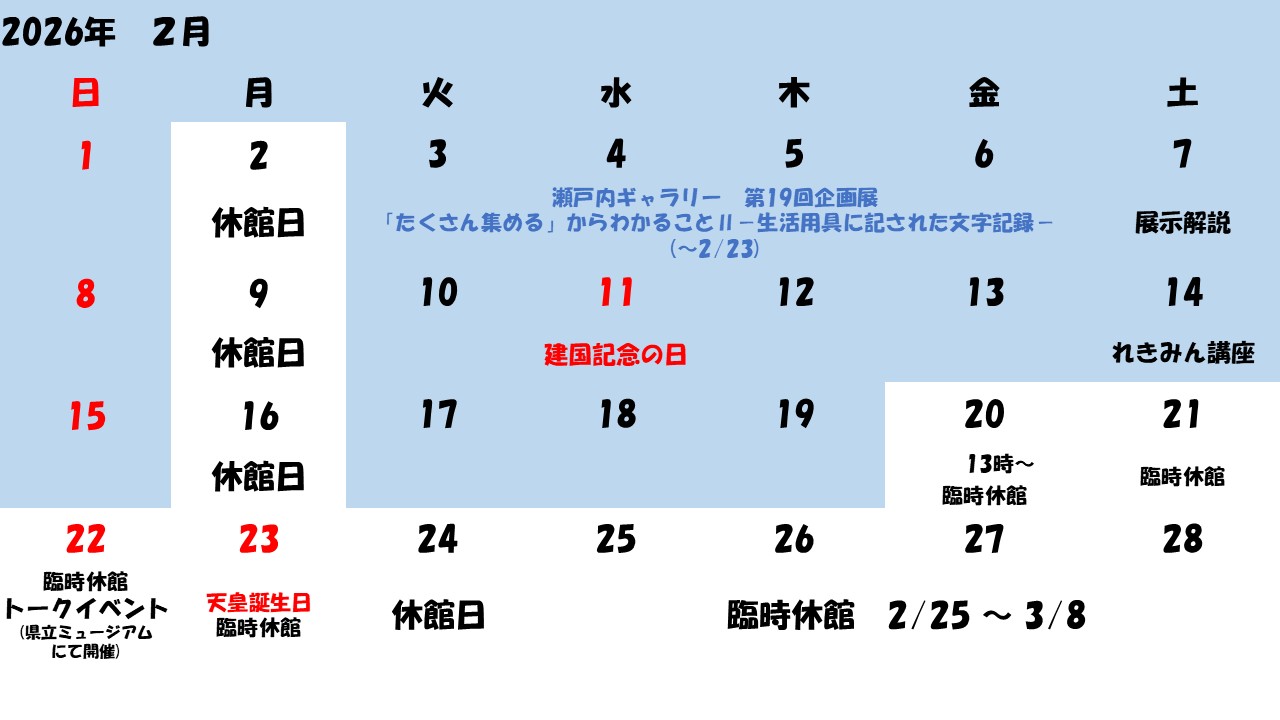 講演会「私たちのくらしをモノから見るー民具と生活財の視点からー」日時:令和8年3月7日(土曜日)13時30分~16時30分 場所:香川県文化会館芸能ホール 会場は、瀬戸内海歴史民俗資料館ではありません。ご注意ください。 定員:40名(要事前申込・先着順) |